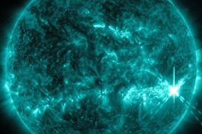 Footage released from NASA shows the flare erupting from the Sun - the European Space Agency say these eruptions can have the energy of 100 nuclear bombs.